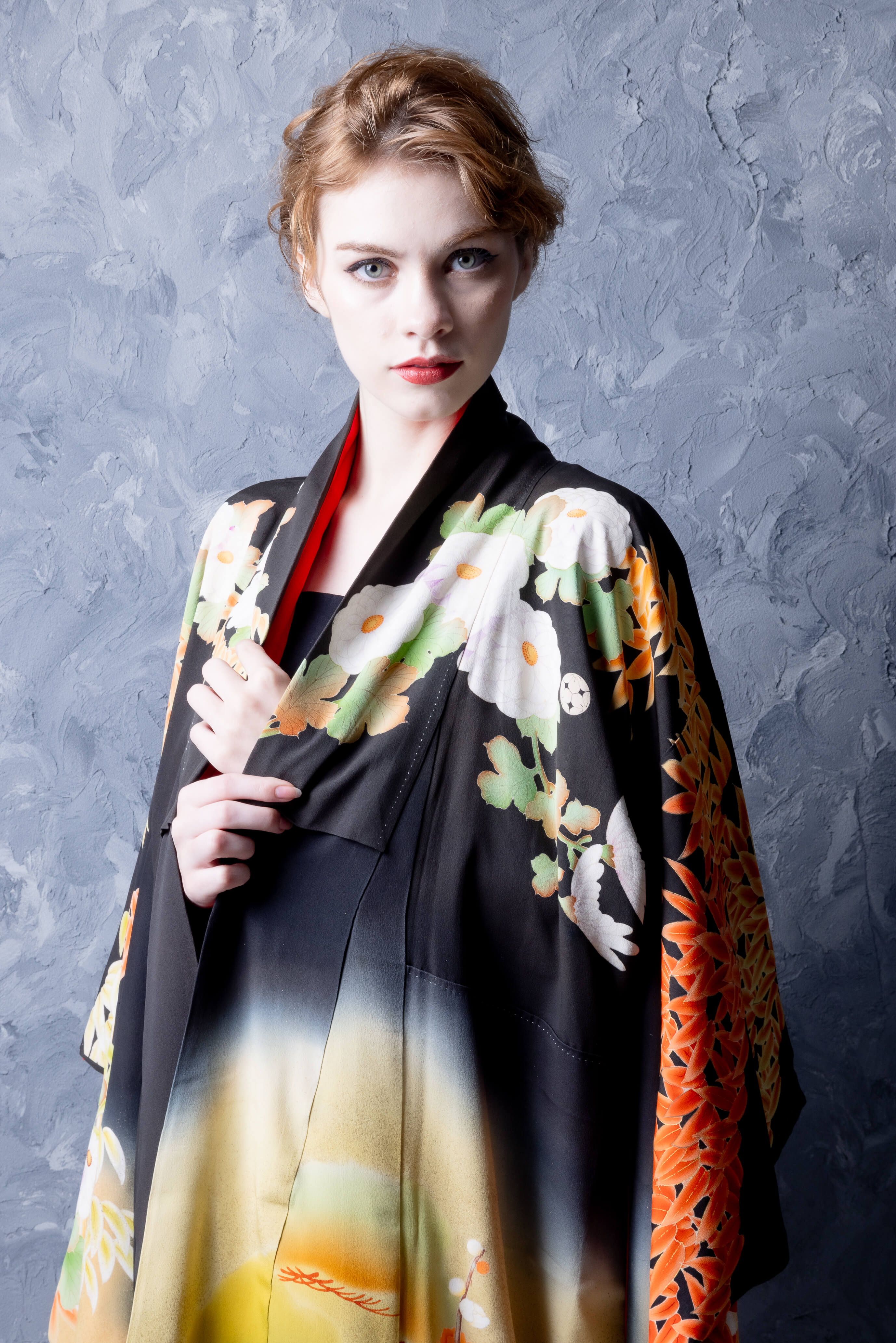 The colors are faithful to tradition, and the timeless beauty of the kimono is brought back to life in the modern age through collaboration with dyeing artisans and kimono sewers.